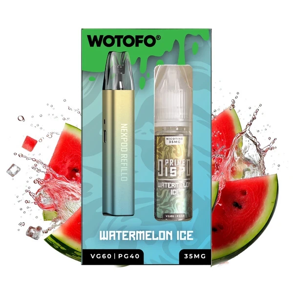 The Wotofo X Prime Dispo Refillo Starter Kit – Watermelon Ice delivers a juicy watermelon flavour with a crisp icy finish in a ready-to-use disposable pod system. Ideal for beginners and on-the-go vaping.
