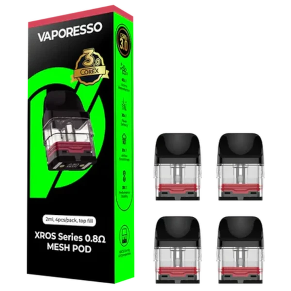 The Vaporesso XROS 0.8Ω 3ML Top Filling Pod delivers smooth flavour, balanced vapour production, and a convenient leak-resistant top-fill system.